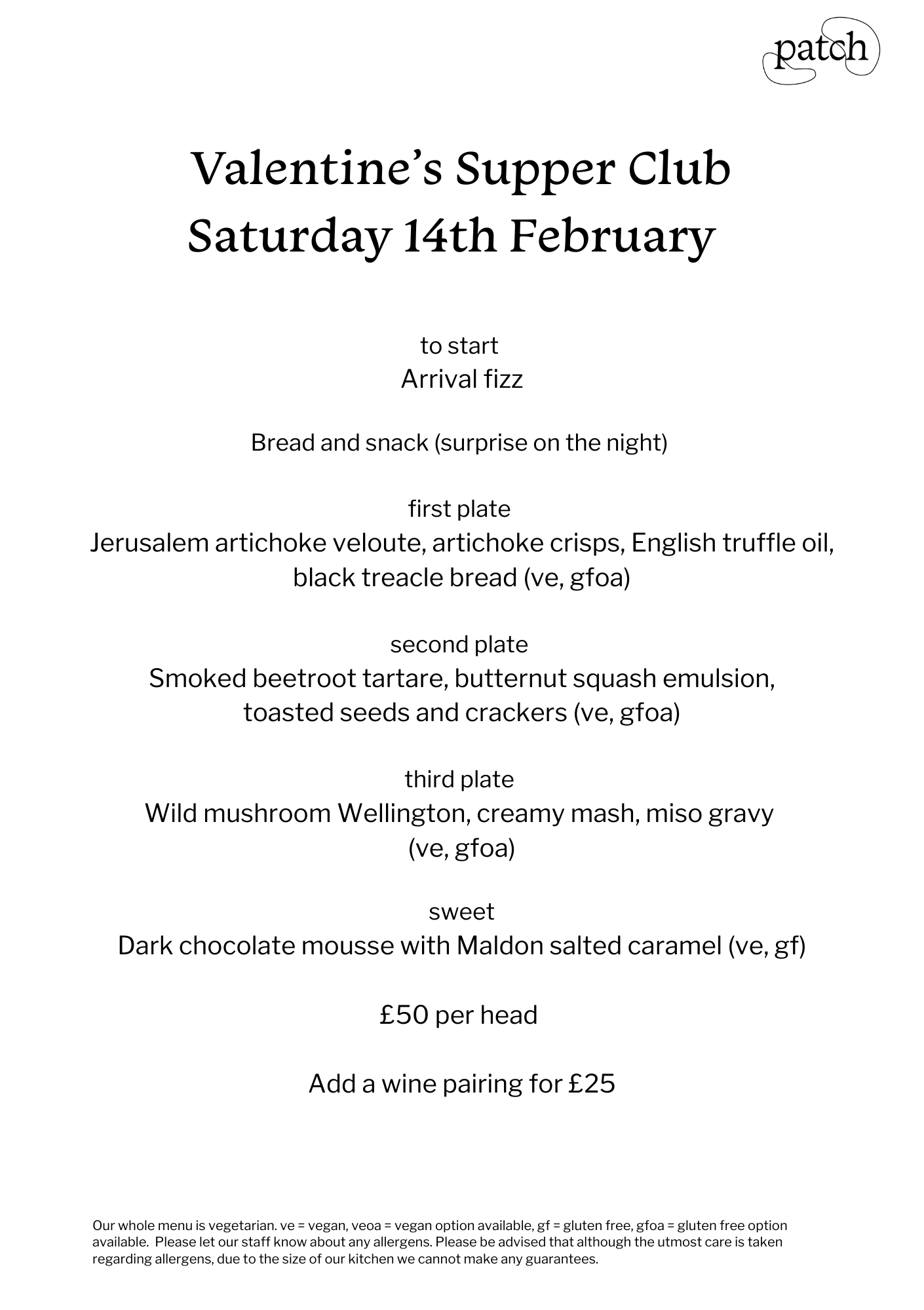 Just to let you know dinner at patch is no longer running. We will be running monthly supper club.